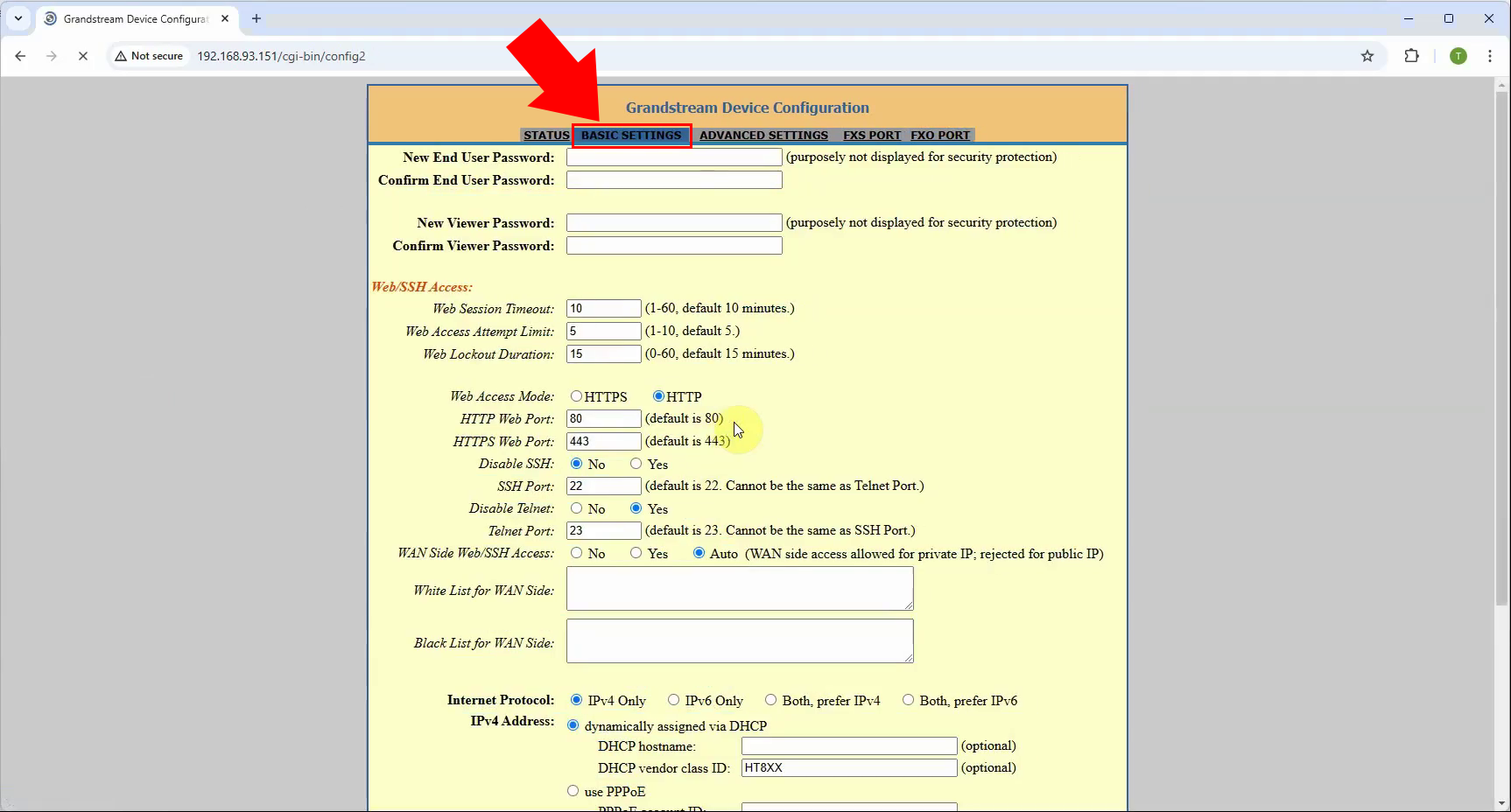 Access the Grandstream HT813 web interface by entering its IP address in your browser. Log in using the administrator credentials to start configuring the device (Figure 3).