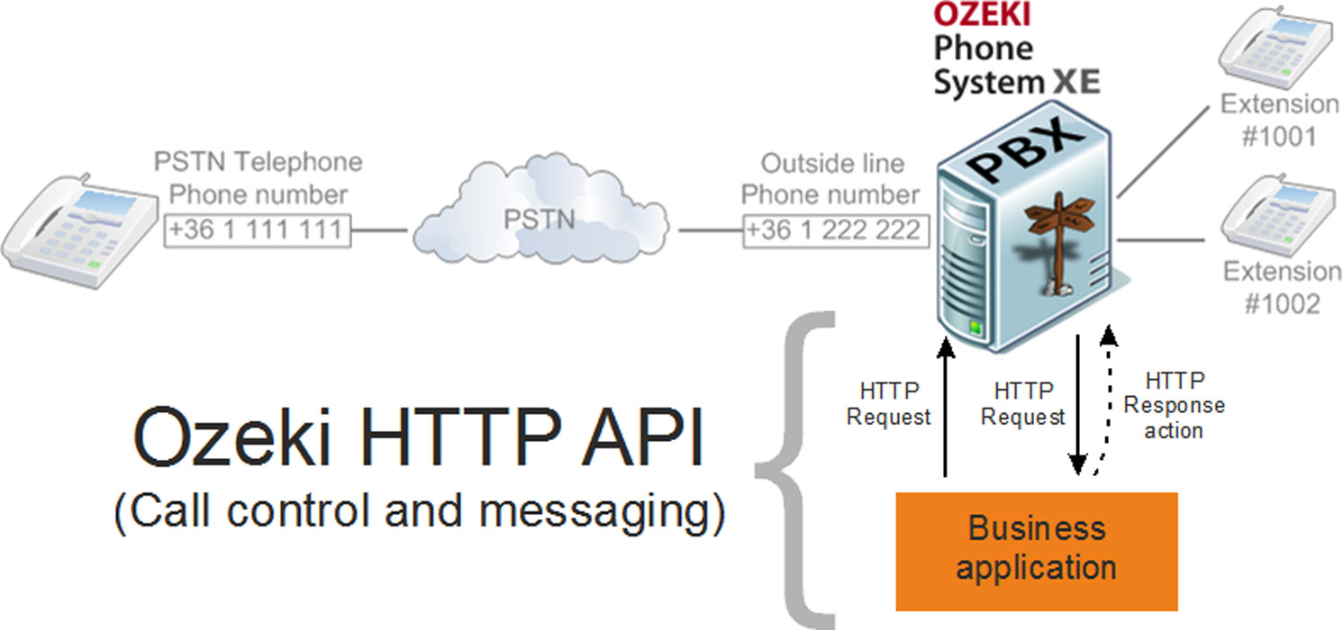 The HTTP API in the Ozeki Phone System provides call control and messaging functionality. Both features provide a set of methods a HTTP Business Application can invoke using HTTP client requests, and a set of events triggered by the Ozeki Phone System PBX. Check out the HTTP request commands, event notifications and OzML commands of the API:
