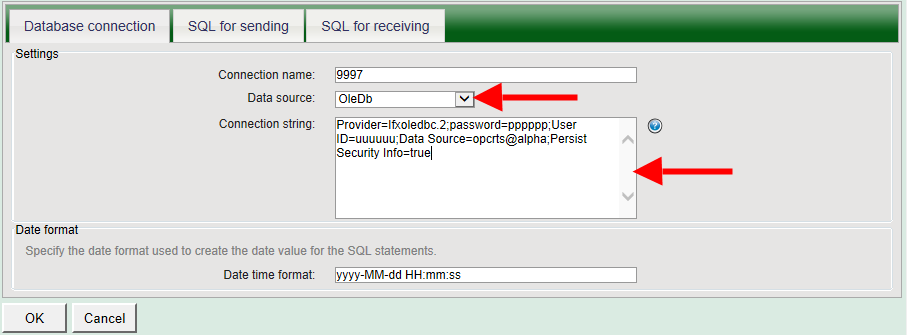 The connection string and the connection type should be entered on the SQL SMS API configuration form.