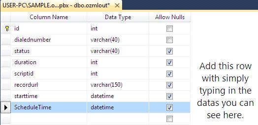To test the appointment reminder first we have to insert a new row to the ozmlout table with the method you already know. So right click on ozmlout table and Edit Top 200 Rows, then just type in the followings: