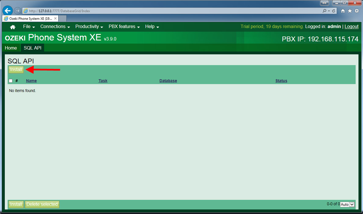 To install the required SQL OzML API first we have to open the Ozeki Phone System XE and log in.