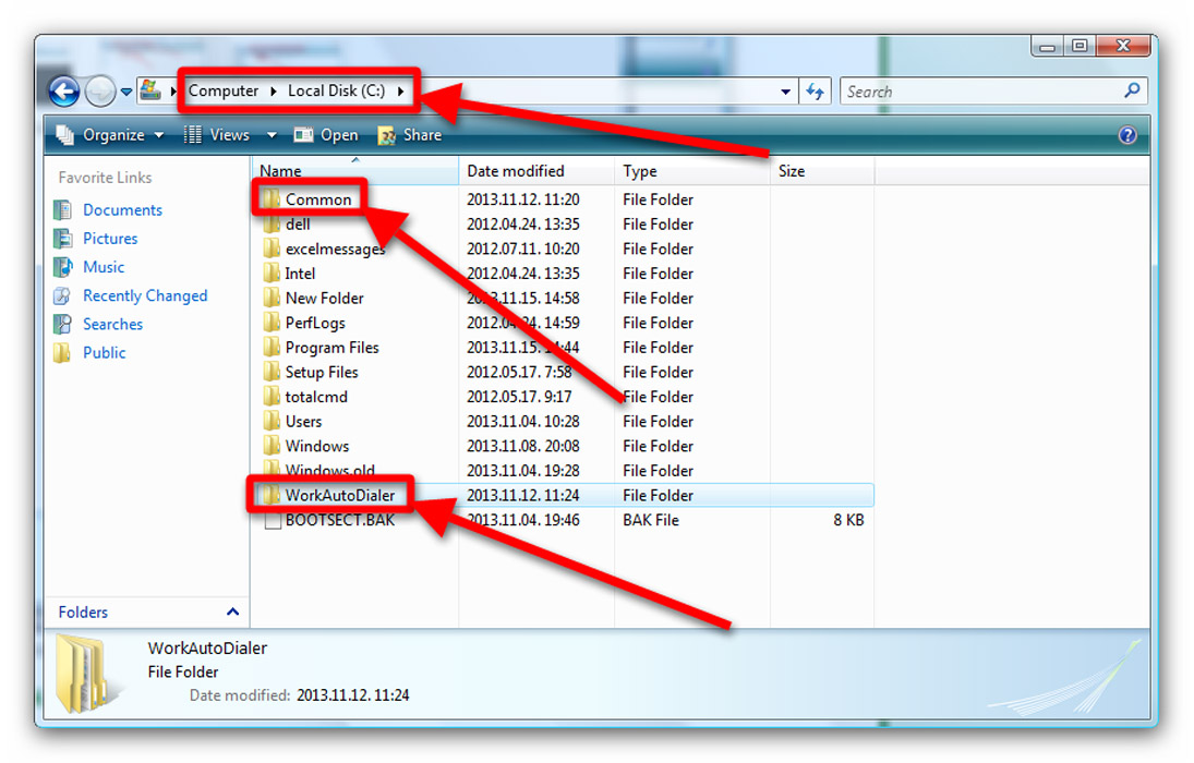 Step 3. Copy the "Common" folder and the "Examples\OPSAutoDialer" folder into the "C:\WorkAutoDialer" folder