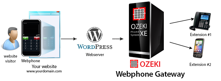 If you follow the steps of the configuration guide below, you will have own CMS system which is connected to Ozeki Webphone Gateway. The system will work as follows: