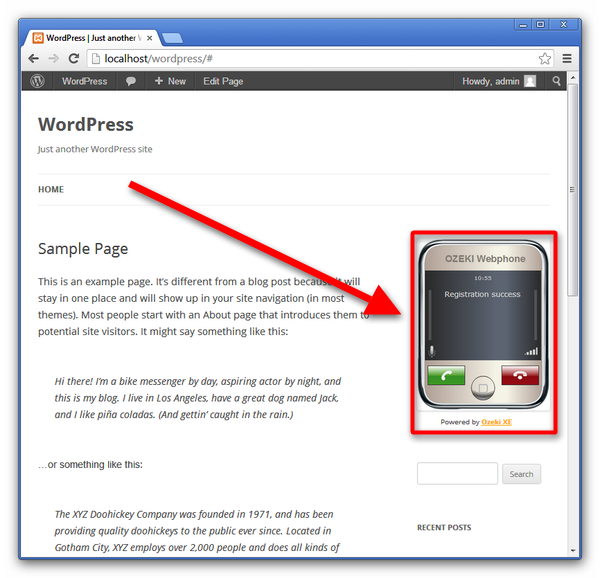 Step 3.) Connect Wordpress with Ozeki Webphone Gateway
