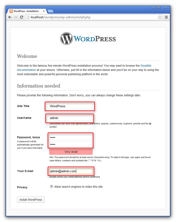 your e-mail. Finally click 'Install Wordpress'. ('Figure 3')