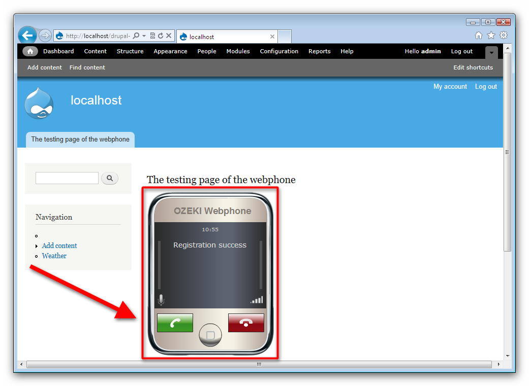 If you have followed these steps, then you have installed the Ozeki Webphone Gateway and the Drupal CMS system and you have made phonecalls over the Webphone Gateway in your web browser. In these steps you could learn new possibilities of the CMS system of your business. You can add your Webphone Gateway into your website or your CMS system. If you have followed these steps and you have finished the configuration, then you can make phonecalls over the Webphone and you can dial your own phones and other devices which support the SIP protocoll.