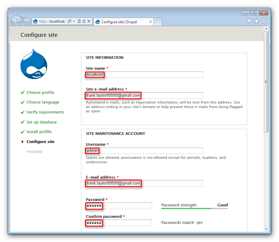 You will be asked for the name and e-mail address of the site then you will be asked for the details of the site maintenance account (Figure 6).