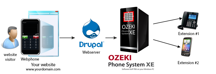If you follow the steps of the configuration guide below, you will have own CMS system which is connected to Ozeki Webphone Gateway. The system will work as follows: