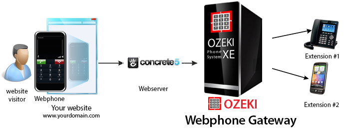 If you follow the steps of the configuration guide below, you will have own CMS system which is connected to Ozeki Webphone Gateway. The system will work as follows: