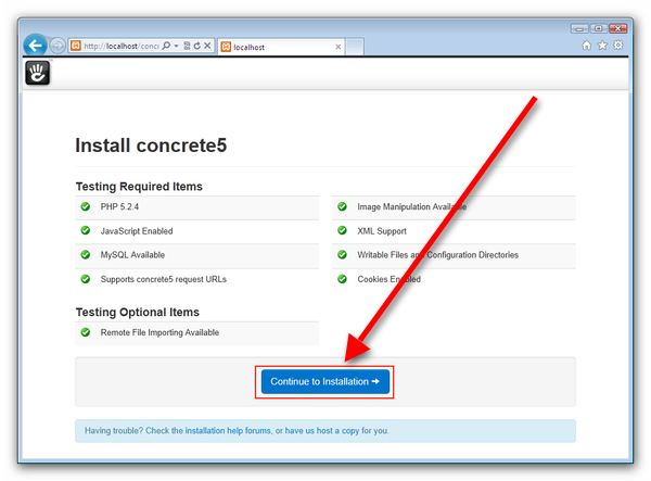 It will navigate to the Concrete5 directory from the main page. Now you can start to install your CMS system,