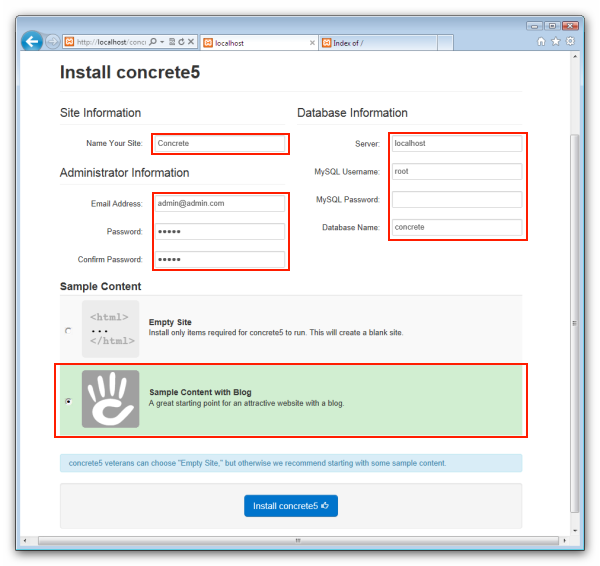 Step 1.) Install Concrete5