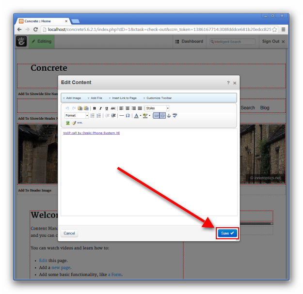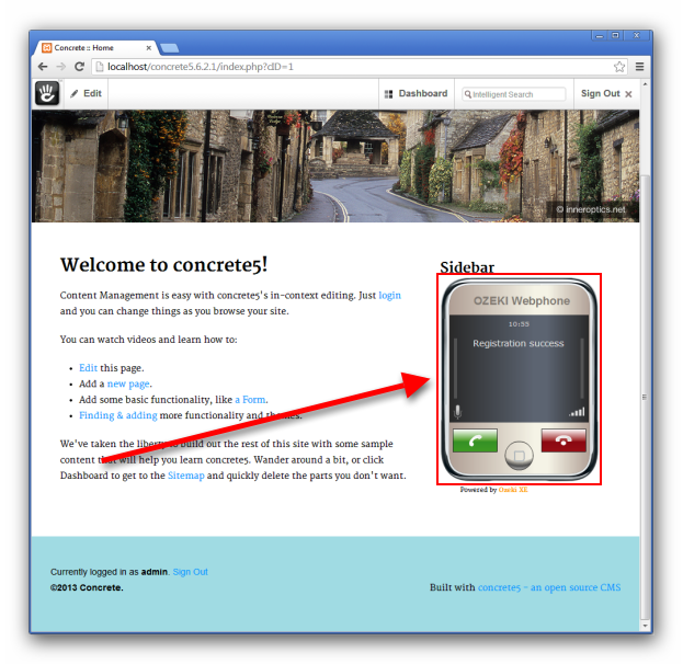 Step 3.) Connect Concrete5 with Ozeki Webphone Gateway