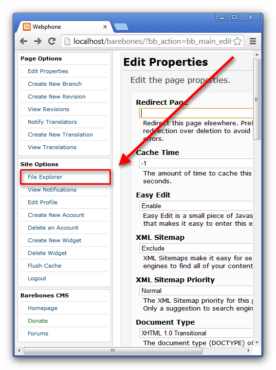 If you would like to put a webphone extension on your webpage, go to 'File Explorer' under 'Site Options' tab in admin mode.(Figure 4)