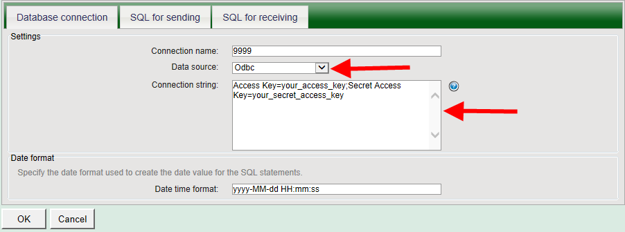 The connection string and the connection type should be entered on the SQL SMS API configuration form.
