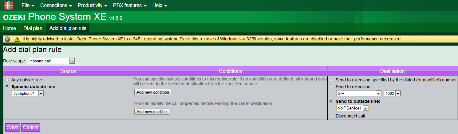 In this guide you can find answer how can you set dial plan if you want to call your own PC. In a few step you can set a dialing rule to transfer your callings from your website to your home business to call your customers or your service. Check the description of the webphone and the CMS systems to before you start calling and download Ozeki Ozeki Webphone Gateway to set up your own Webphone . You can dial your home, or your business PC if you install a softphone and set to Ozeki Webphone Gateway. If you want to dial your own PC you should install Webphone Gateway and a softphone. After you installed softphone just add it as SIP extension to you Webphone Gateway. You need to add dialing rule to reach and dial your own computer.After you add SIP extension you should configure dialplan rule. Just add inbound routing which kind of device would you like to call. You can modify and add new condition if you want to call another phones.